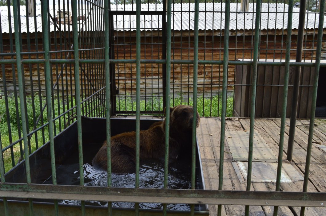 Kieruję się w stronę mini zoo, które zlokalizowane jest na terenie skansenu. Zapach jest okrutny, większość czasu próbuję wstrzymać oddech. Warunki w jakich trzymane są zwierzęta są przytłaczjące. Mimo, że widziałam już swego czasu w Kunming w Chinach wilki trzymane w parometrowych klatkach, to co spotykam w tym mini zoo przekracza już pewne granice. Jest wypłowiały wielbłąd, który jest właśnie dokarmiany przez miejscowych kanapkami. Tak, tak, bułka z masłem i szynką jest jego naturalnym pokarmem. Trzy wypłowiałe wilki lisy, jelonki, niedźwiedź brunatny trzymany w klatce wielkości mojej sypialni, który chodzi z nerwowo z jednego końca na drugi, klatki z ptakami, które szybko mijam. Odór jest nie do wytrzymania. Idę stąd.